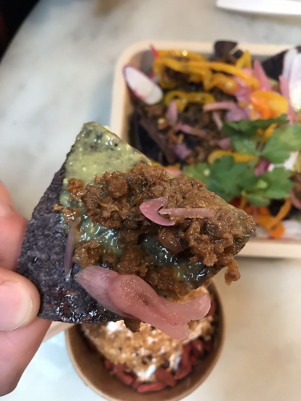 Impossible meat on the nachos