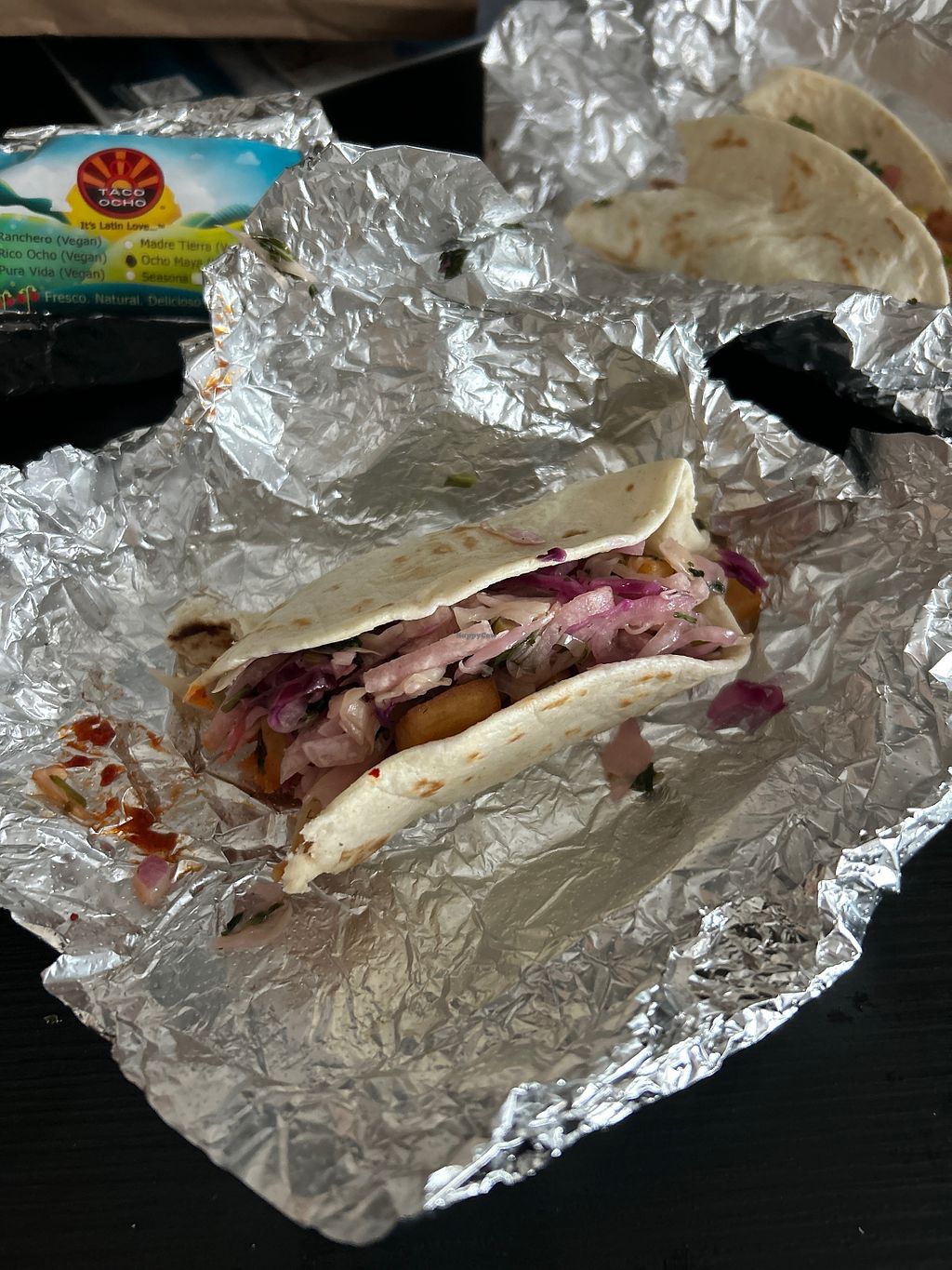I forgot what kind of Taco they were. But it had guac, black beans, pl…