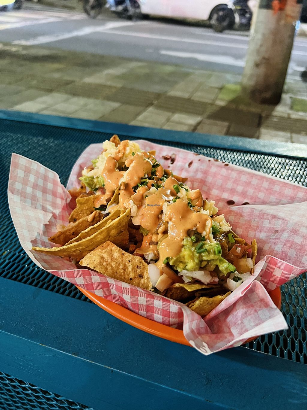 Nachos (15.000 COP) with beans, guacamole, onion, tomatoes and some ki…