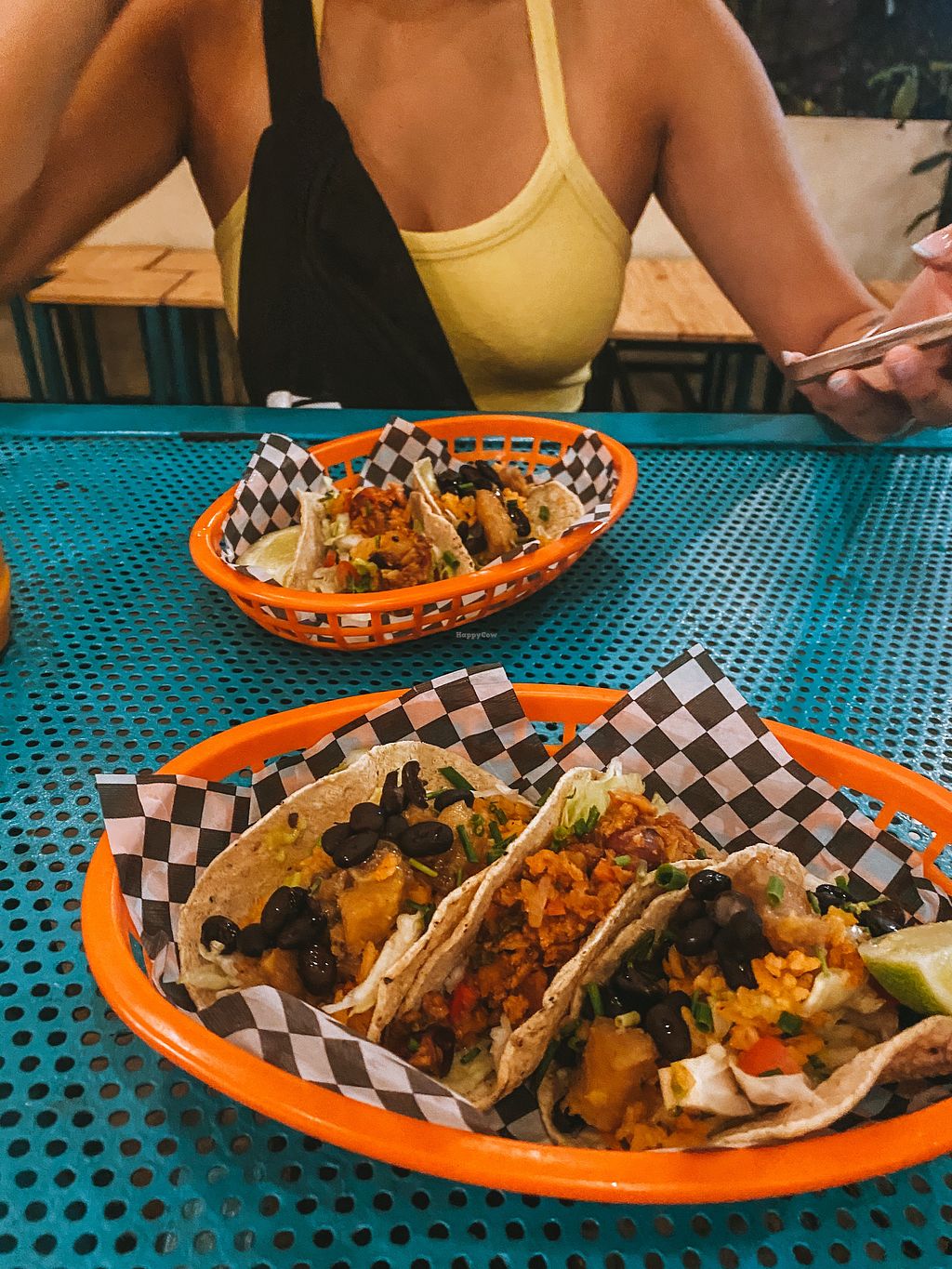 6 tacos vegan con agua fresca de piña