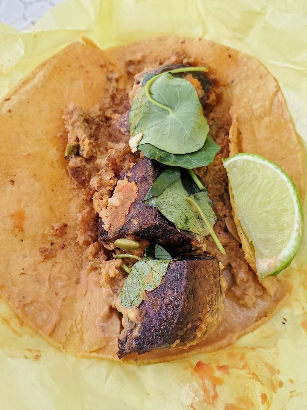Vegan taco restaurant opened Jan 2021. Makes tacos with fillings and ingredients like yam, farro, oyster mushrooms, and tofu. Menu also has migas breakfast burrito along with pudding, churros, and coffee drinks. Reported closed June 2022.