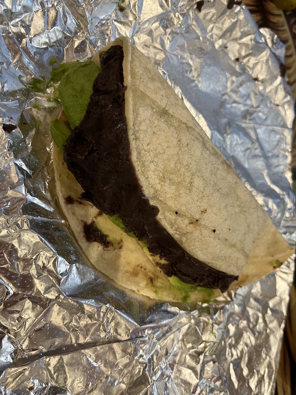 Happy with the flavor of the vegan option, but it needed more texture. Luckily the pico helped with some crunch, but beans and avocado are both mushy. The Heather taco is vegetarian (with cheese). I'm sure it can be made vegan also.