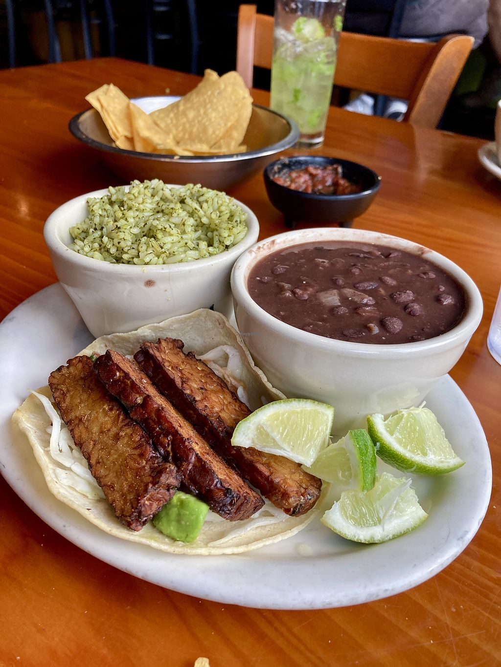 Read morePros: Tempeh tacos , Great chips / salsa and beans , Great atmosphere - go when not so busy