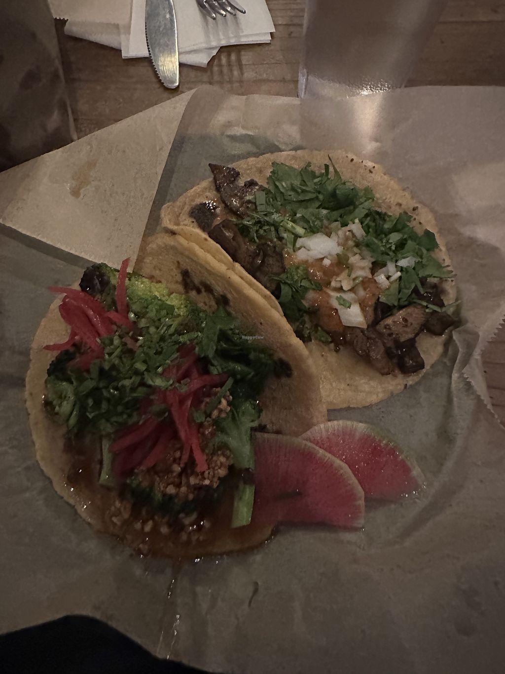 1 mushroom taco and 1 broccoli taco