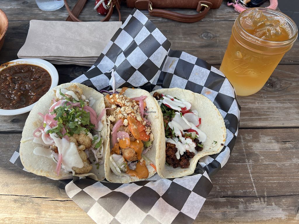 Great vegan taco options, even seasonal ones that change! Their drinks are always great and I've tried all the vegan tacos they offer. All are great but the smoked tofu and the crispy cauliflower are my go tos. There is still a lot of meat on the menu but they are very accommodating with the bowls and tacos. Salsas are all very good as well and they have a bunch you can try!