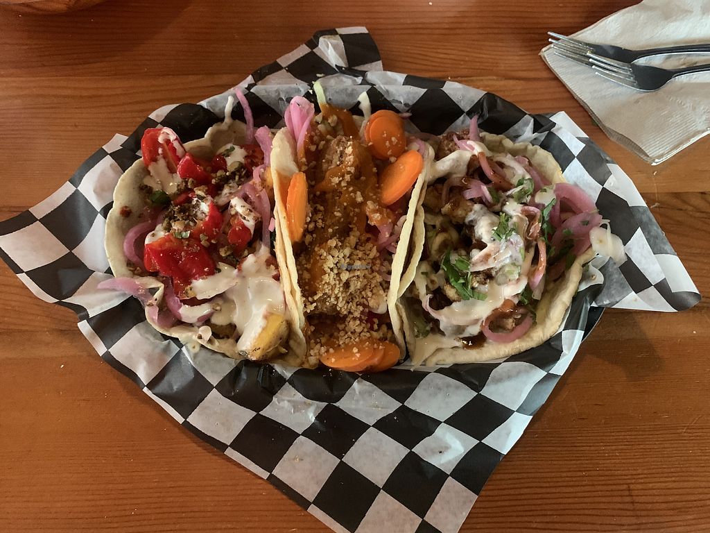 They have a few good vegan tacos and they can even turn some of the not-vegan ones vegan. Really good. I love the fried mushroom tacos.