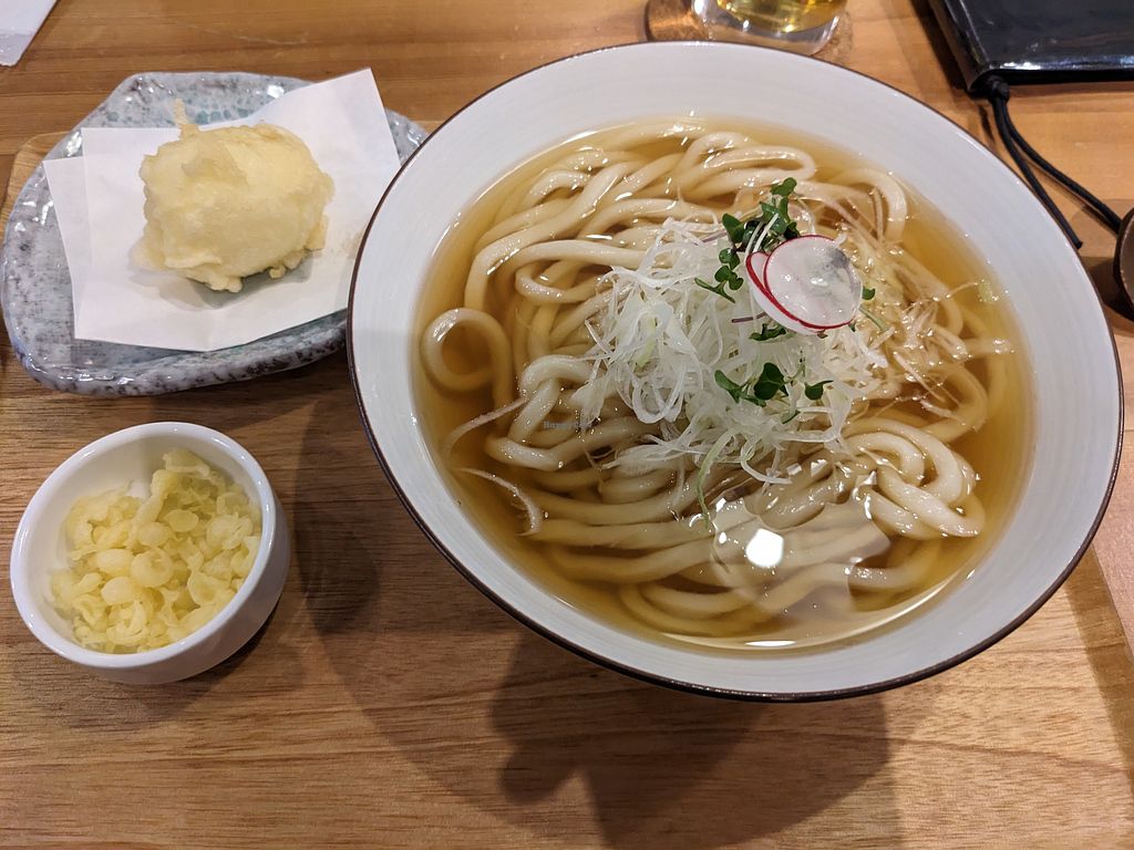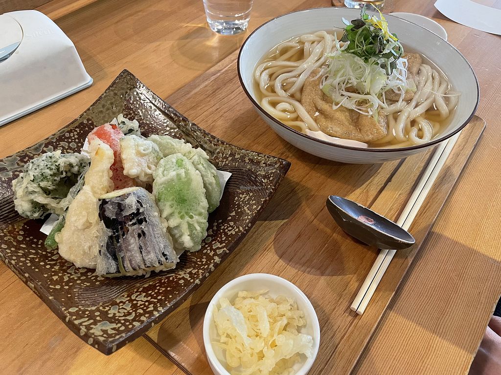 Vegan veggie tempura and kitsune udon.