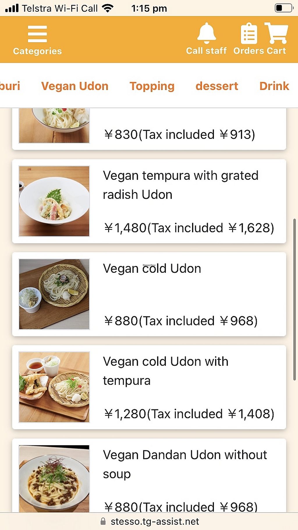 Vegan menu continued