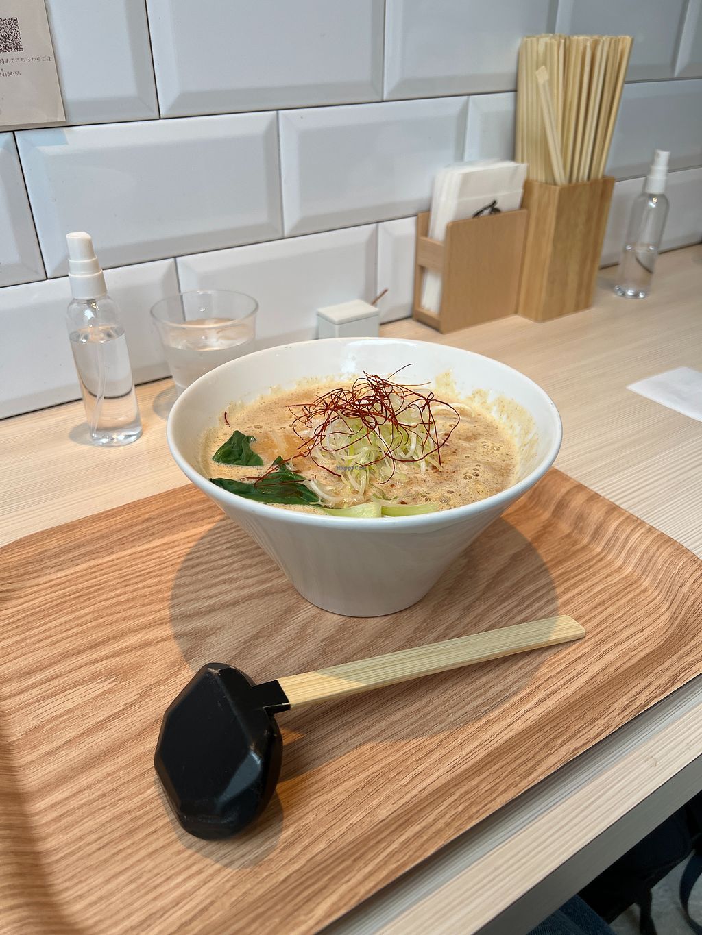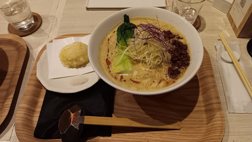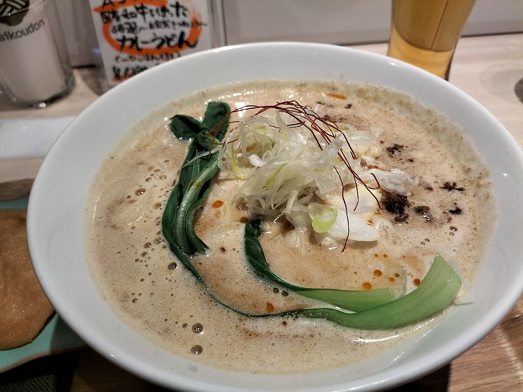 Soy milk dandan udon noodles, additional topping tempura soft boiled e…