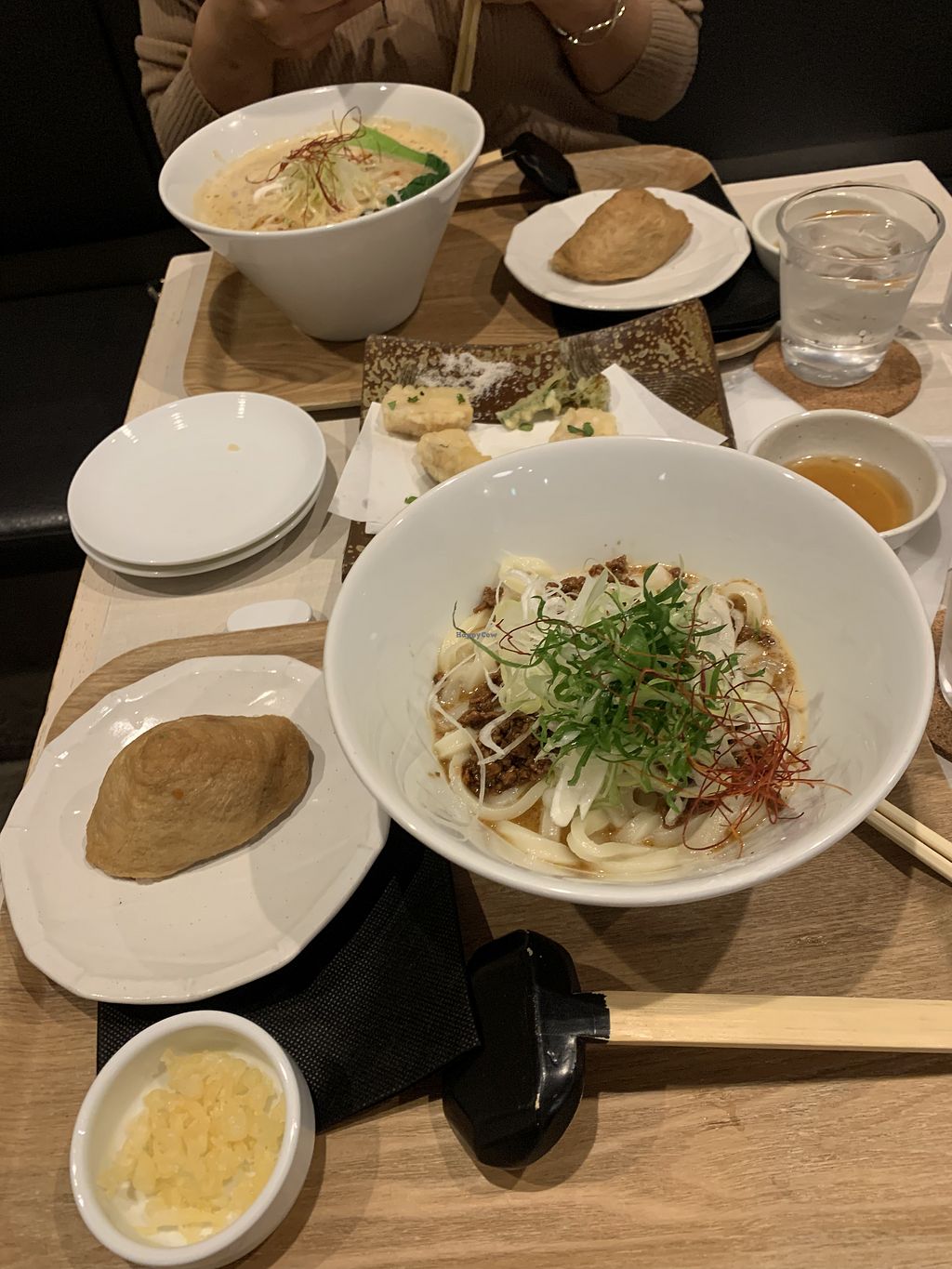 Soy milk tan tan and the normal tan tan udon with inari sushi.