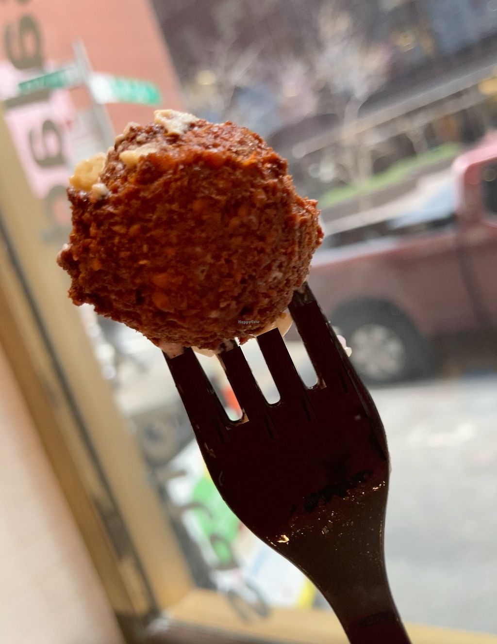 Near Carnegie Hall and City Center, this place is good for a quick healthy bite for those in the area. They have vegan felafel, schwarma, and impossible "meat"; You order at a kiosk, then pickup at front--grab a stool or table or have your meal to go.