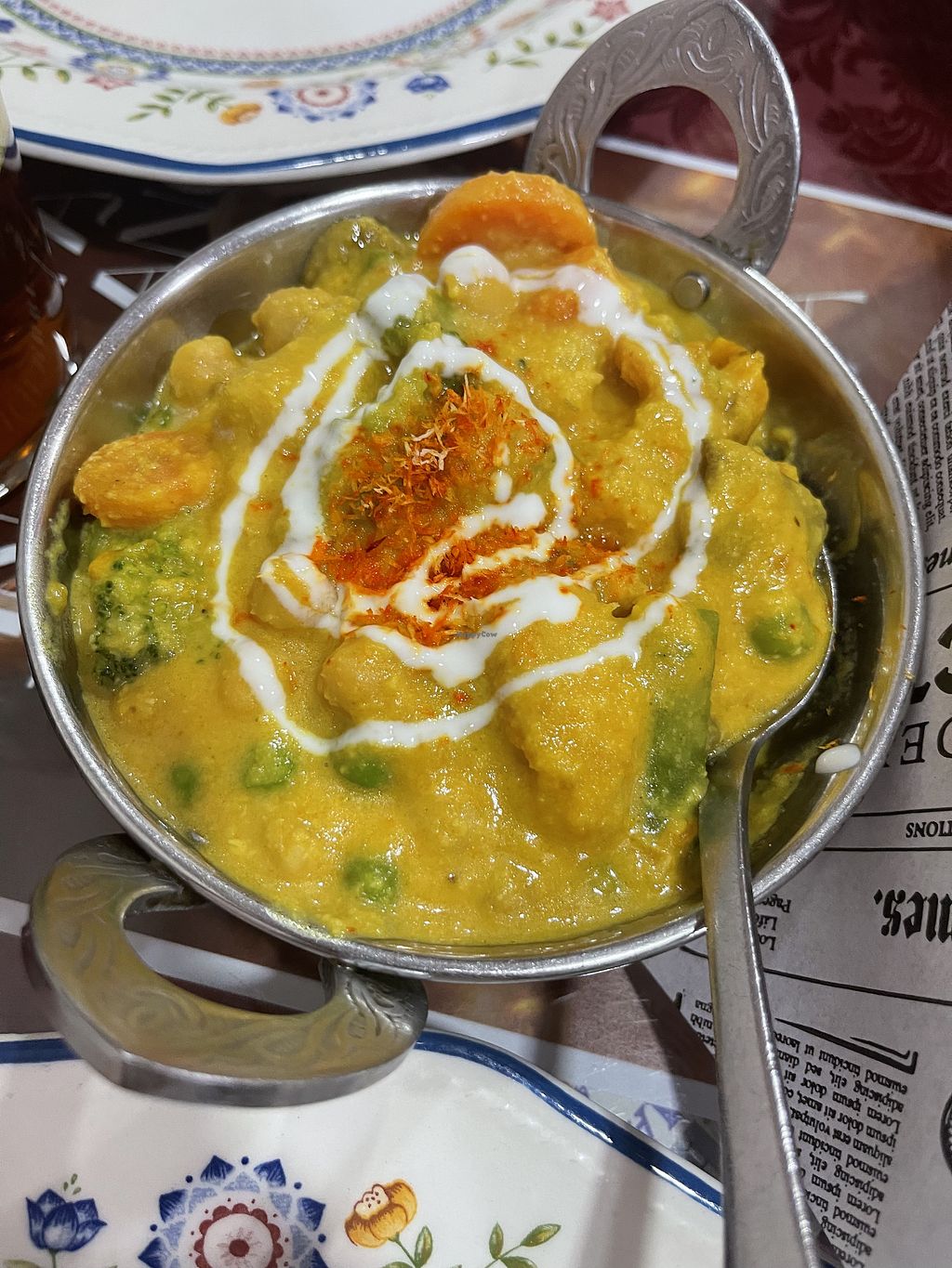 Serves meat, vegan options available. Indian food menu with several vegetable dishes.