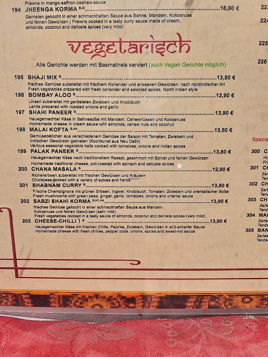 One of the few places in Crailsheim where you can get quite a lot of vegan Indian dishes