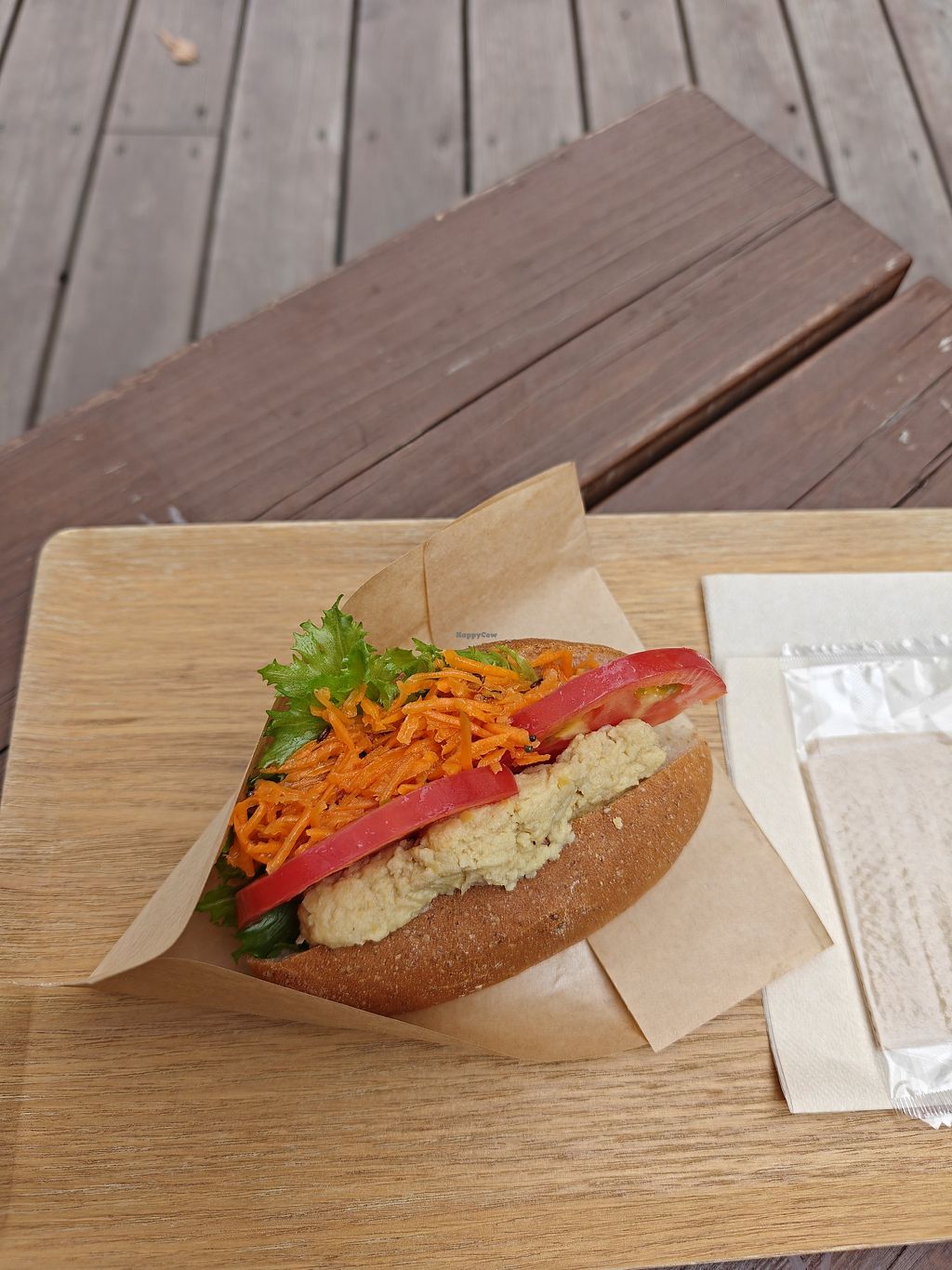 Came here after hiking Mt Takao for a beer and what I thought would be a vegan hot dog. However the vegan hot dog was in fact a hummus sandwich with lettuce and tomato. Maybe this was explicitly labeled on the menu in Japanese and I missed it since I don't speak the language, but it was listed next to the hot dogs so I expected an actual hot dog.
