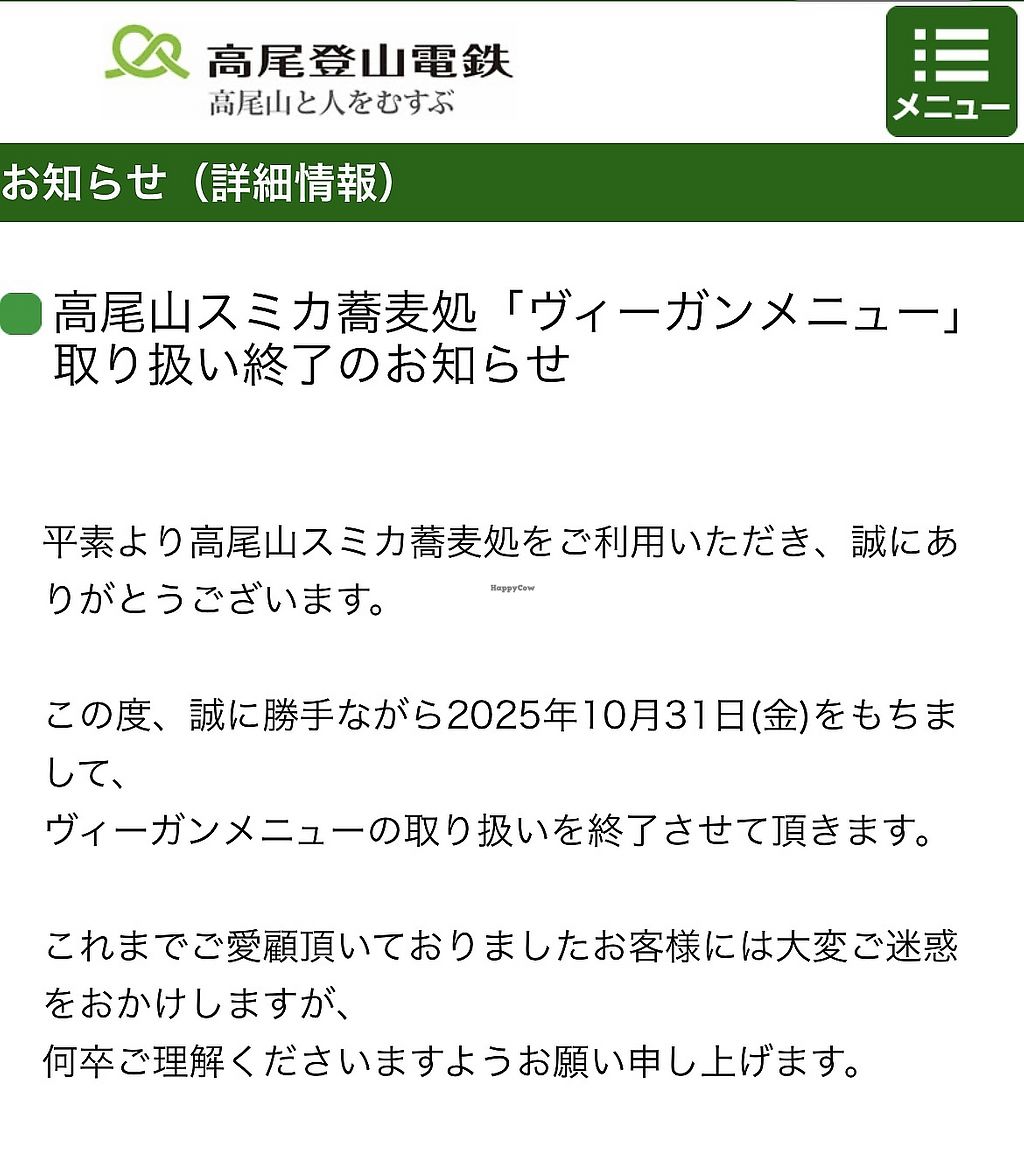 It’s posted on the website that from 31/10/2025, they will no longer be serving vegan options.