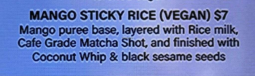 Read moreTheir mango sticky rice matcha, which is already listed as a specialty drink on the menu, was a standout. It was smooth, lightly sweet, and incredibly well balanced. Most of their other drinks can also be made vegan by simply swapping the milk, which is always appreciated.
