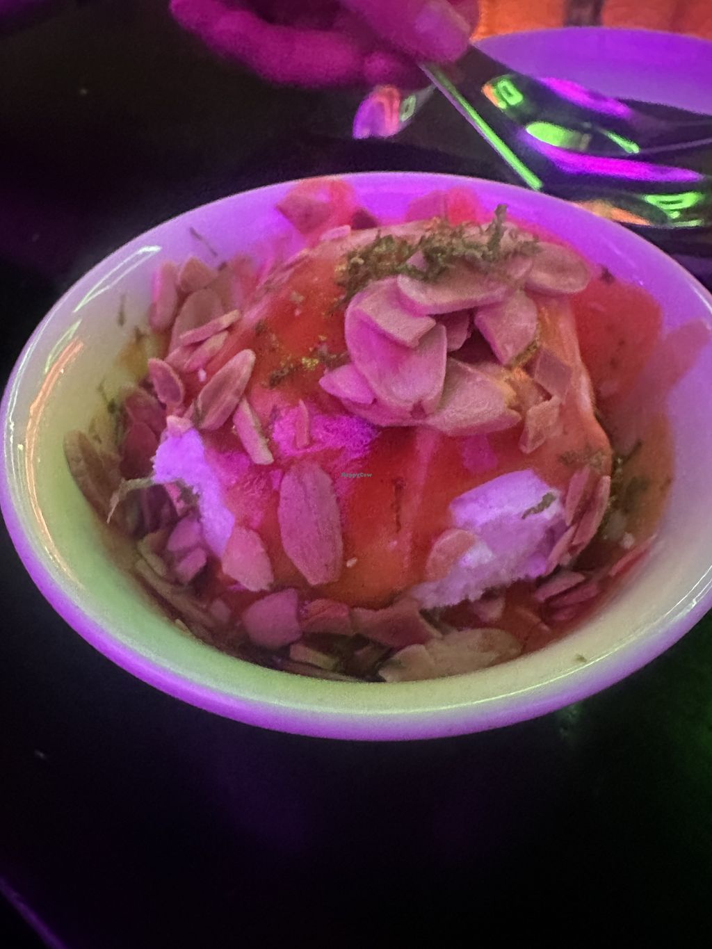 Vegan dessert coconut ice cream mango puree sauce 😻
