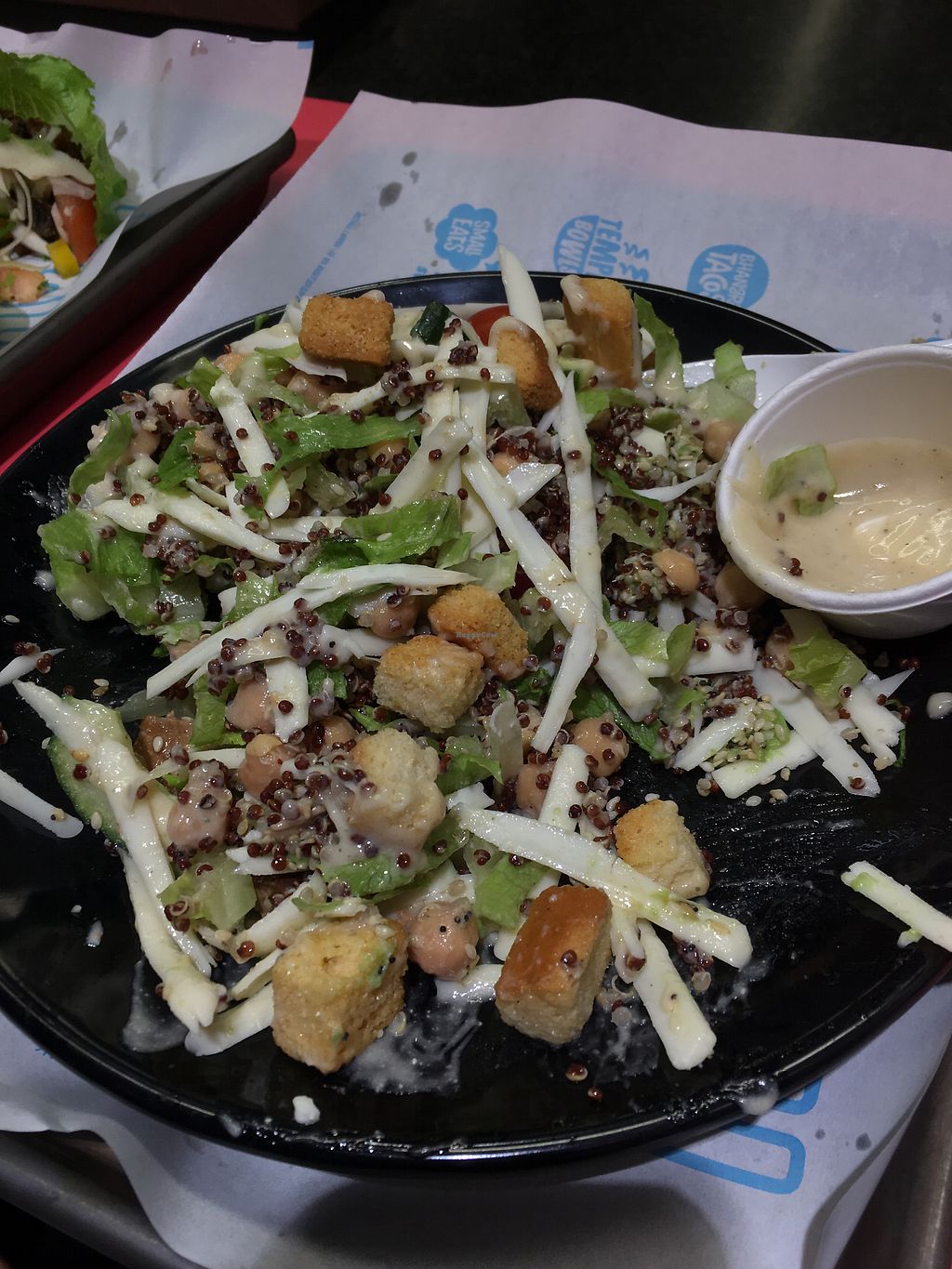 Strongly recommend the panko fried pea tempeh. Like the idea that you can pick and mix and choose between bowl, bun, salad and taco to go with your preferred filling (I went for the jackfruit and really liked it).