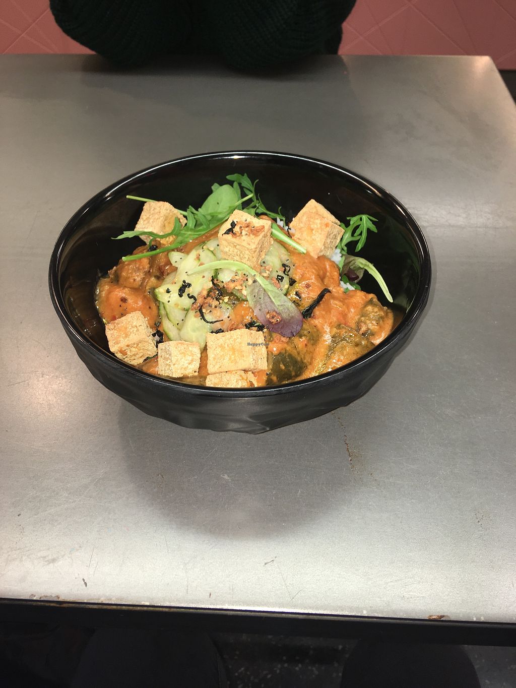 I'm a fan of tempeh and ordered Tempeh Katsu Bowl. The tempeh had good crisp and taste and contrast well to the kimchi, rice and other vegetables. Small place in a busy shopping mall. A bit pricey for fast food, but expected in plain centre of Stockholm.