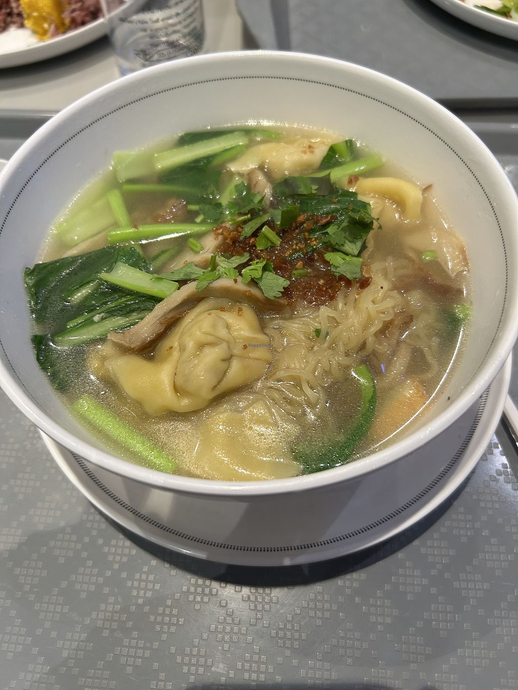 Yellow noodle wonton soupp