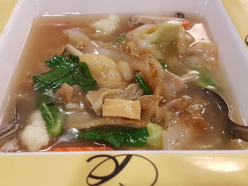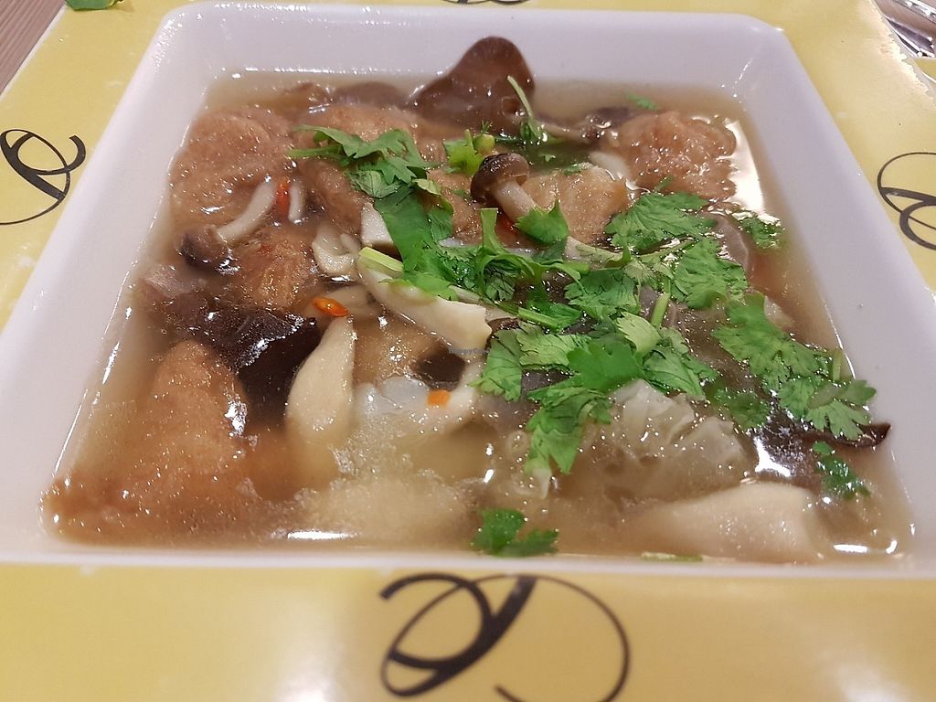 Fish maw e mushrooms. No noodles. But nice n hot. Not spicy