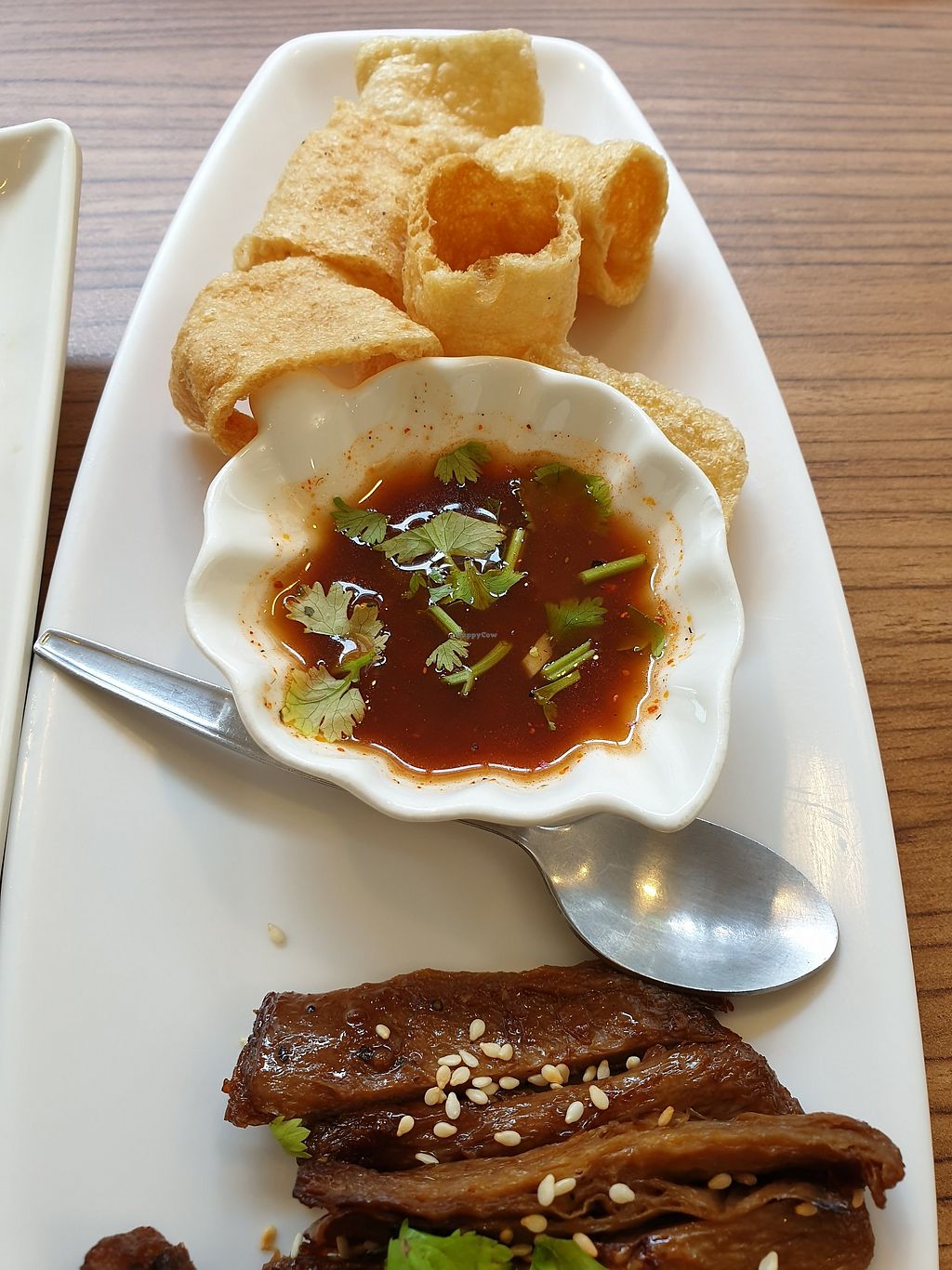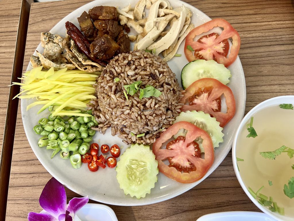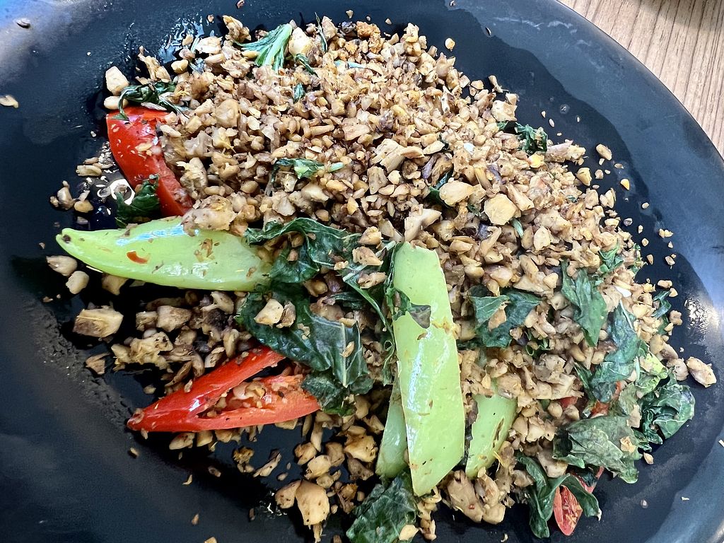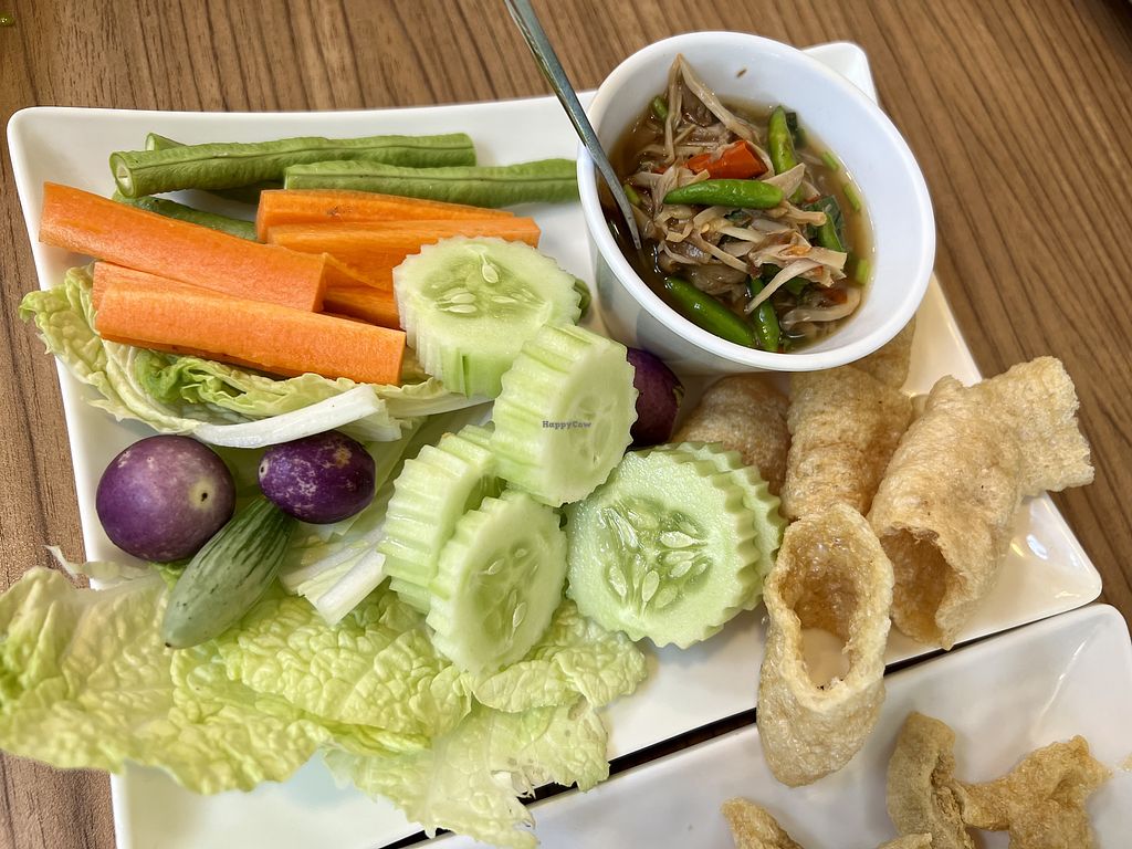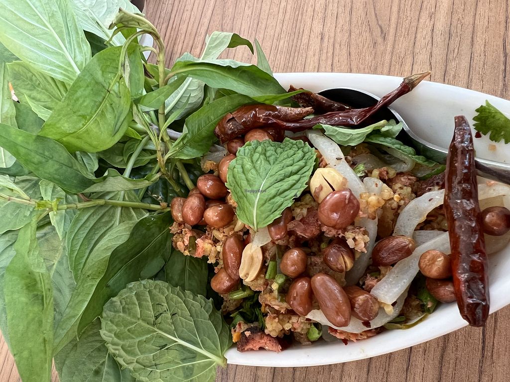 Fermented vegan pork salad ยำแหนมข้าวทอด