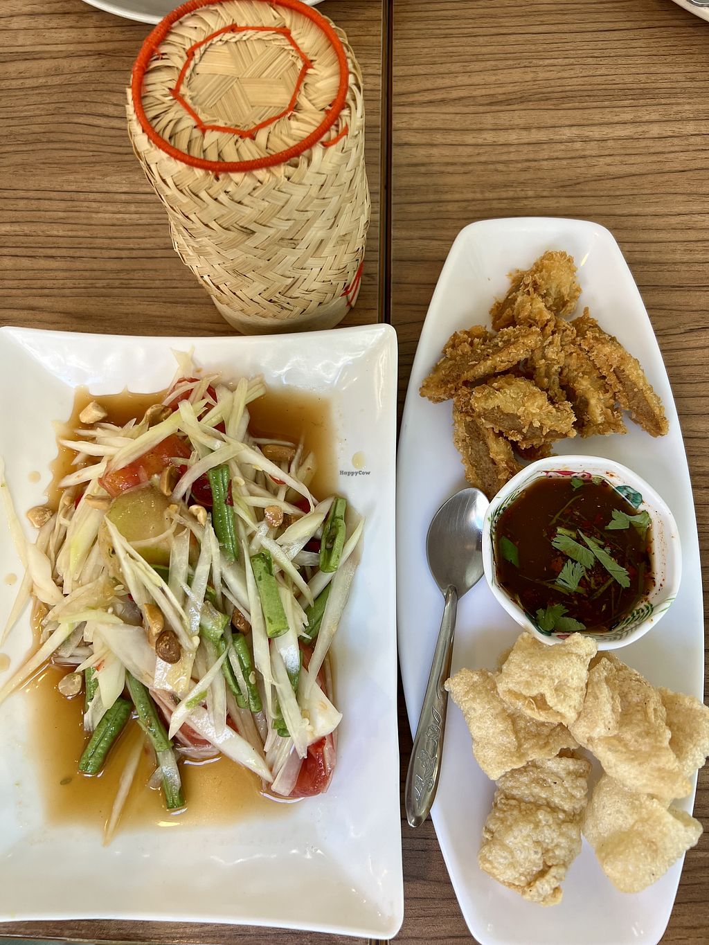 Papaya salad set with fried “chicken” & crispy soy protein
