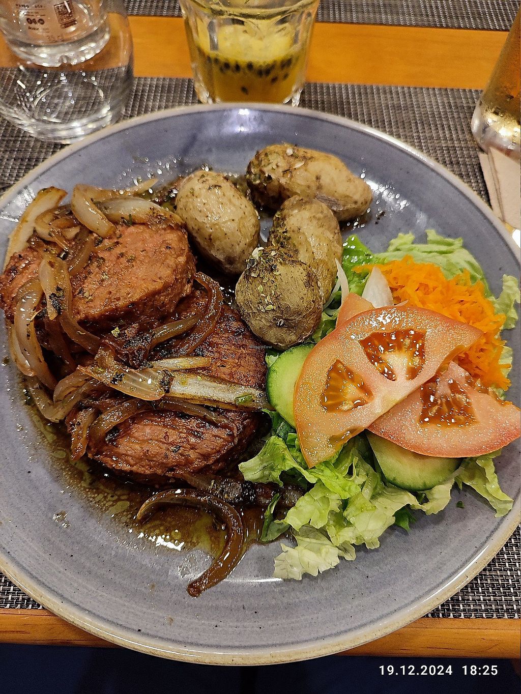 In a town with very few vegan options, it was nice. The burger patty was store bought and without bun and we would not choose it again, but the stuffed eggplant was very nice and if you choose a side dish (salad, potatoes etc) it’s a good meal.