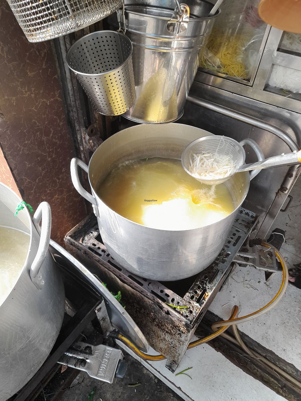 Massive pots of vegan broth