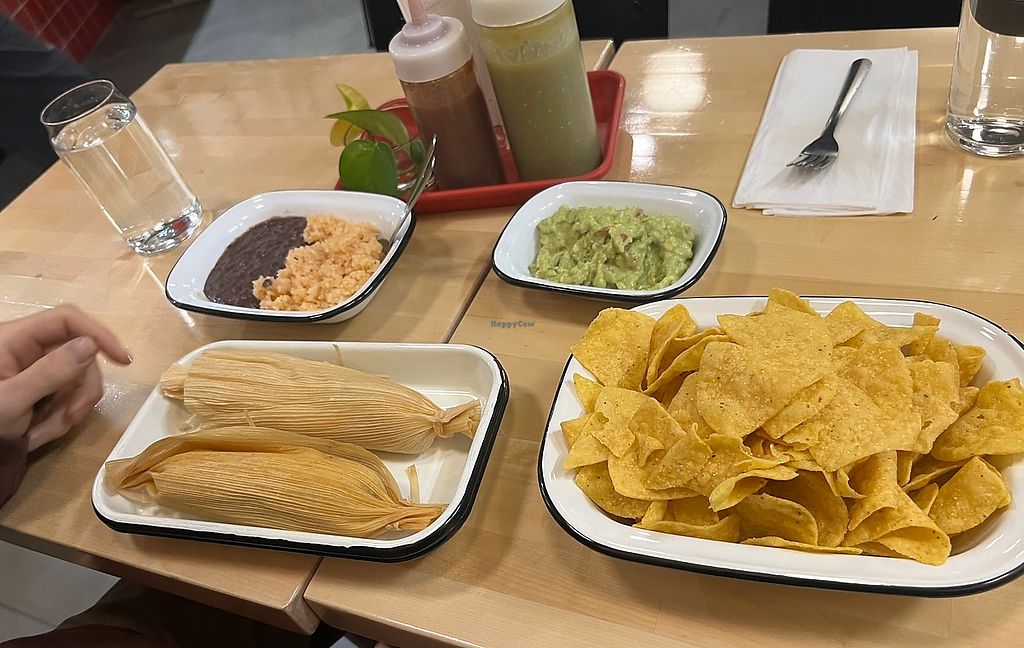 Partner and I got the vegan black bean tamales, chips, guac, and and side of rice and beans, rice is vegan too! huge hit! cleared the plates, will be back!