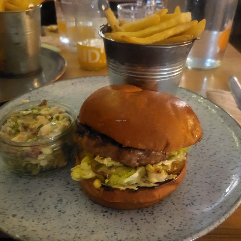 The standard burger, with slaw and fries