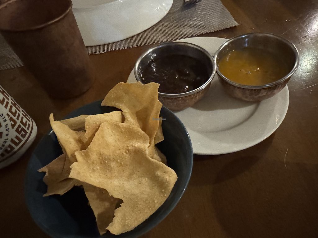 Lovely outdoor setting, but covered and with many ceiling fans.