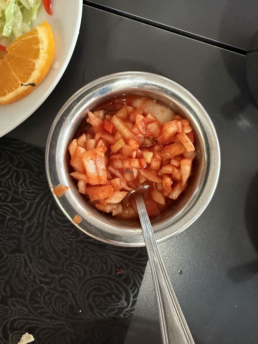 Lovely and very tasty food, very friendly service that understands that some people don’t eat any animal products. There are a few vegan starters, almost 10 vegan curries and at least three different rice to choose from. The Papadam with the onion chutney, the Aloo Pakora and both mixed vegetable curries are just every time a highlight. If you’d like to have it very spicy just ask for Vindaloo spice