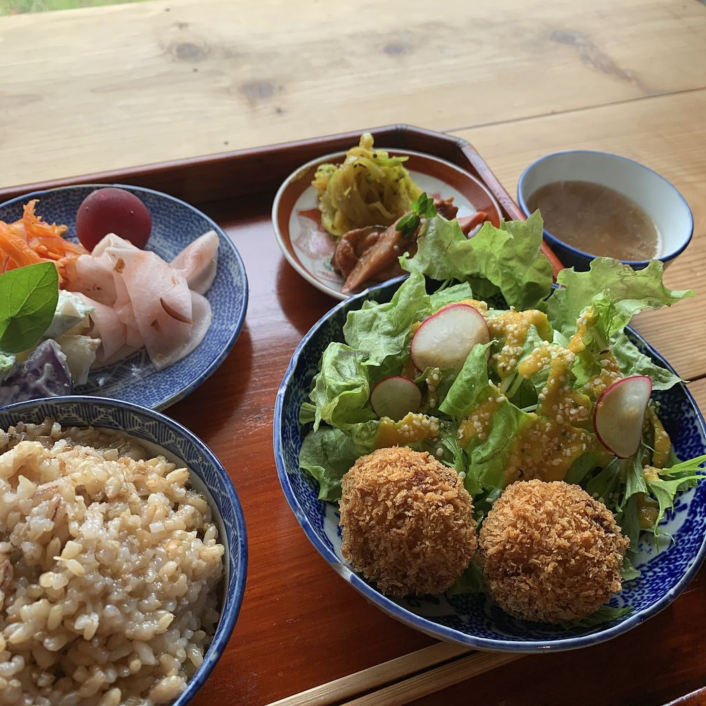 Mainly using local organic vegetables and fruits. Also, has a store selling organic foods by weight.
