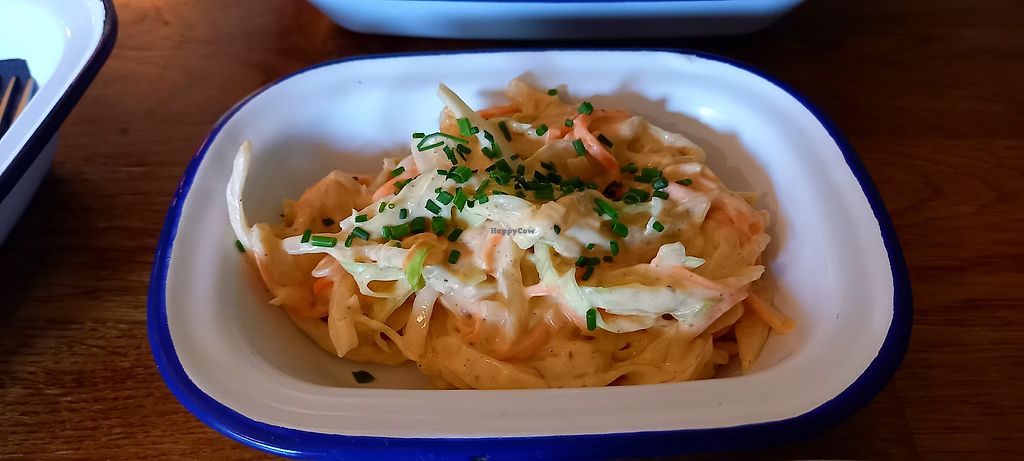 Nice to find a vegan cafe in a small village on the IOW. Had the special schezuan wings, 4 wings with chips and a tiny bit of slaw. Very tasty but could have had more slaw and/or salad for £12.