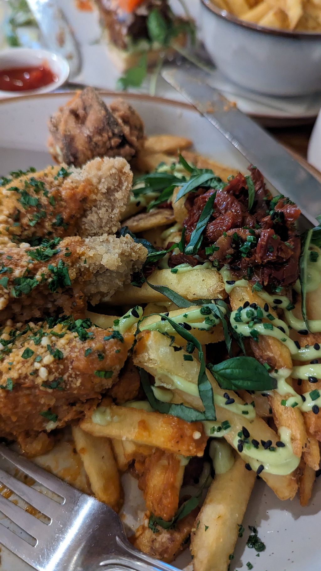 Lovely ambience/building, plenty of choice and quality fresh food. We shared a soul bowl, bread & olives platter and creole corn ribs and it was all so yummy.