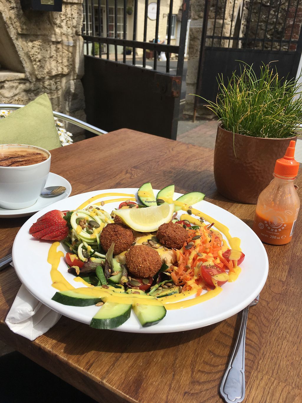 Cute spot with a lovely courtyard sitting area and lots of lovely food options. Just had the no sausage roll but it was delicious!