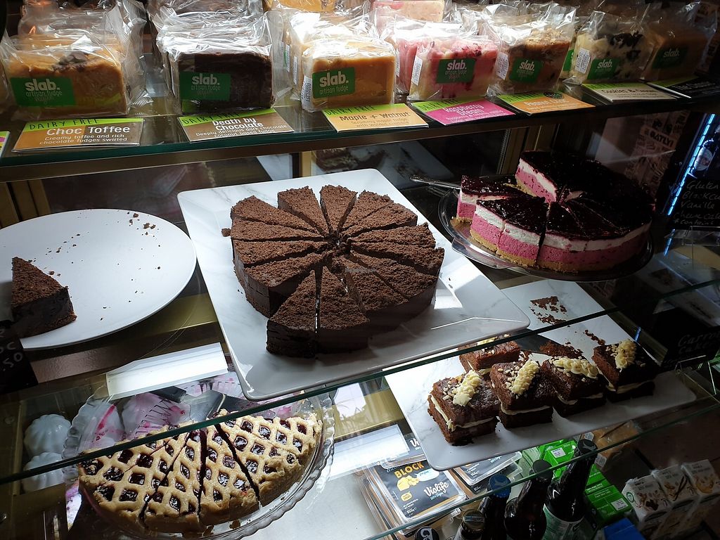 Vegan restaurant est. 2019. Serves plant-based foods and drinks, and offers a daily selection of cakes and pastries including raw cheesecakes. Find savory items like faux fish & chips, burgers with fries, curries, pasta, and falafel platters. Check webpage for updates & changes due to Covid. Reported closed September 2023.