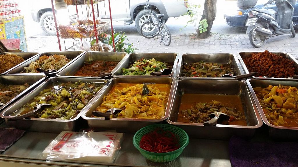 Normally I don't like buffet because food doesn't look delicious. But in this restaurant, buffet looks good and food is tasty. Very nice religion music and friendly owners. Pretty good and clean hall with tables and electric fans. No air-con, good food, free drinking water, cheap price - 1 choice from buffet is 20 bath.