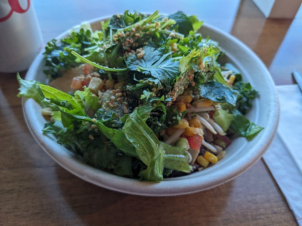 I like to get the bowl with the purple rice and kale base, all the mixed veggies and slaws are vegan and they have three vegan sauces. The tofu is pretty oily so I usually just get a half order of the "protein". A fast food joint next to sprouts supermarket.