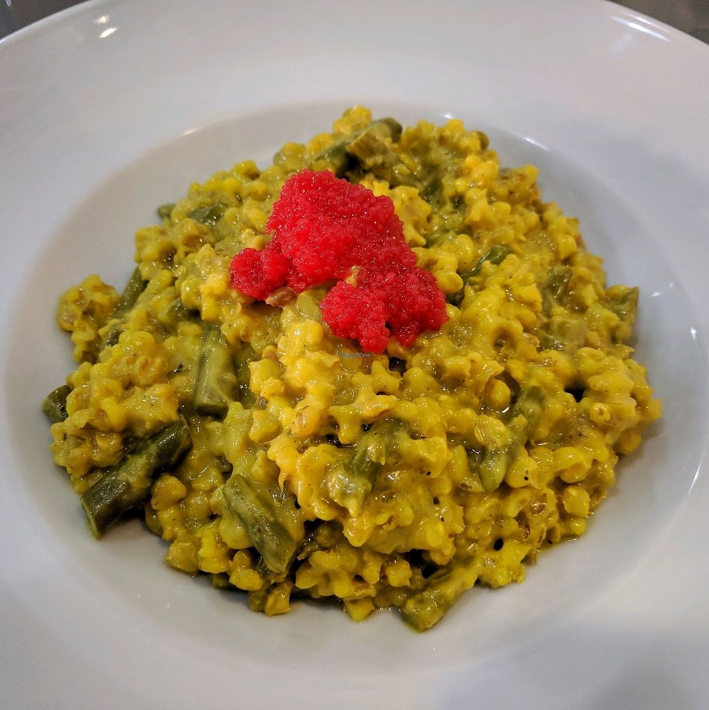 barley risotto with plenty of asparagus and a spoonful of caviar