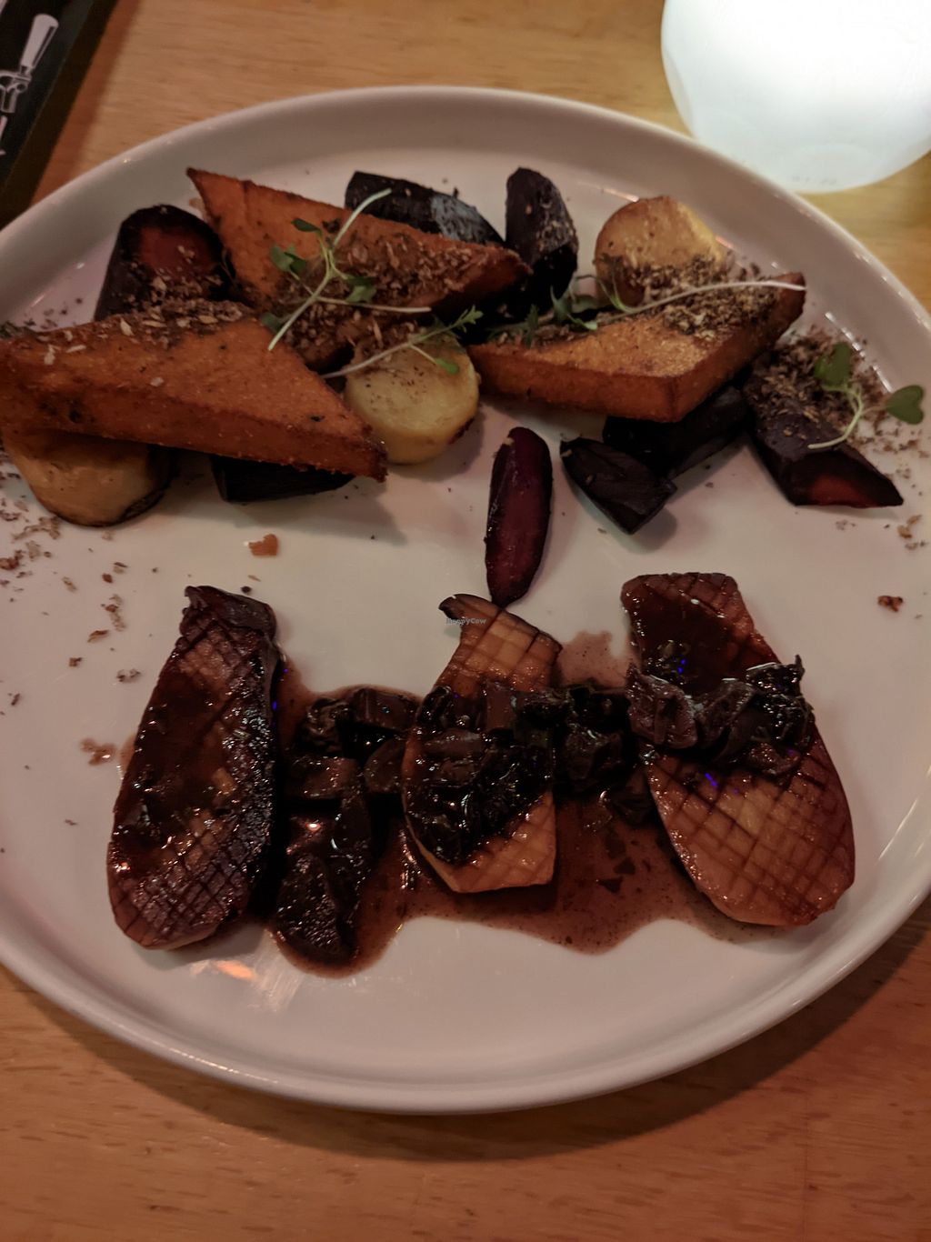 Ik was hier wel enthousiast over. De gerecht zijn wat simpel, maar super smakelijk! Bij elke gang zijn er wel een of meerdere vegan opties en, ook niet onbelangrijk bij een taplokaal, ze hebben iets van 25 tappunten!