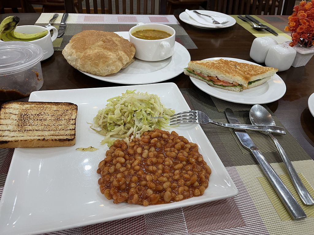 We stayed in the Tara Phendeyling hotel where we had a few buffet style breakfasts and dinners. Toasts with jam, rice, different kinds of cooked and raw veggies, veg manchurian, veggie chow mein, curries, etc. They even made us a vegan chocolate cake. Everything tasted really good.