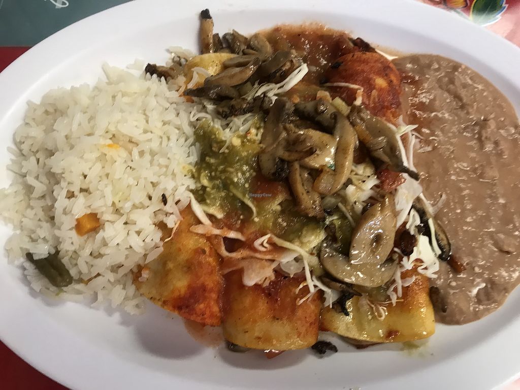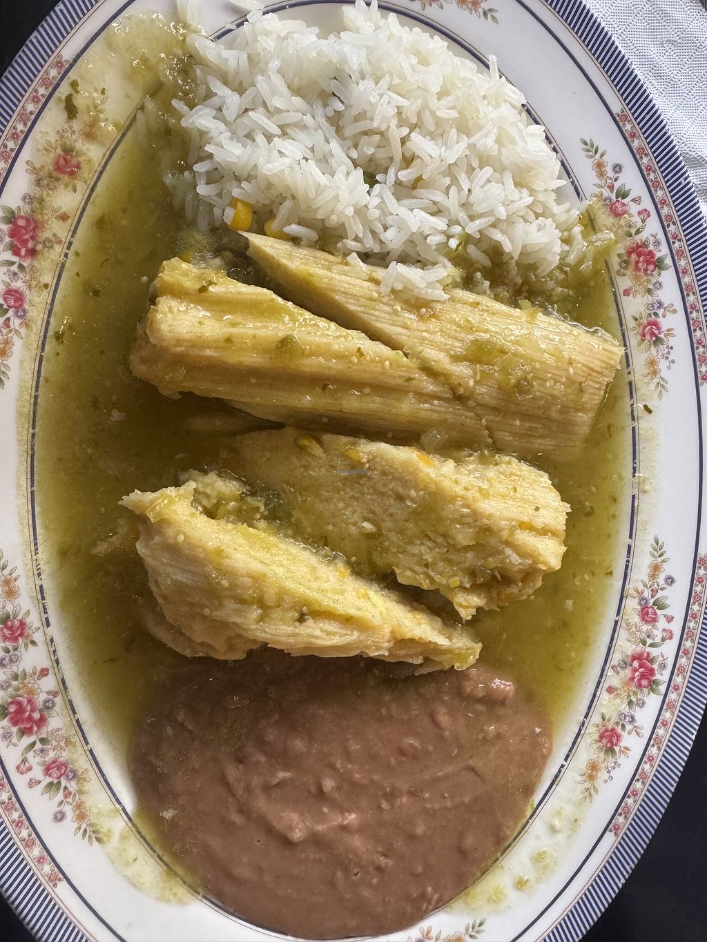 I got the potato and carrots enchiladas that came with refried beans and rice. It was amazing!!! Lots of food for the price. Got the corn tamales as well and they were just alright. They have good flavor but there’s nothing inside of them