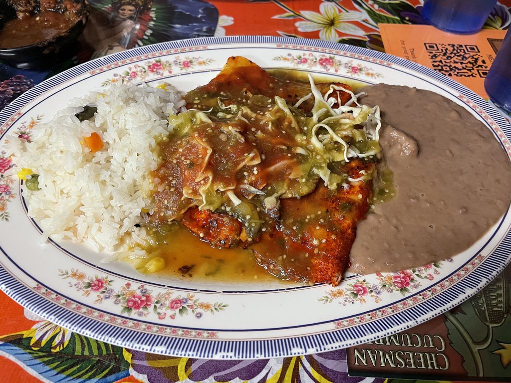 Ever since becoming vegan my wife & I both really miss & crave good Mexican comida. The enchiladas plazeras (carrots & potatoes) is by far our favorite dish to satisfy our craving! We get w green instead of red chile & 1 plate is more than enough for us to split!! Delicious enchiladas!!
