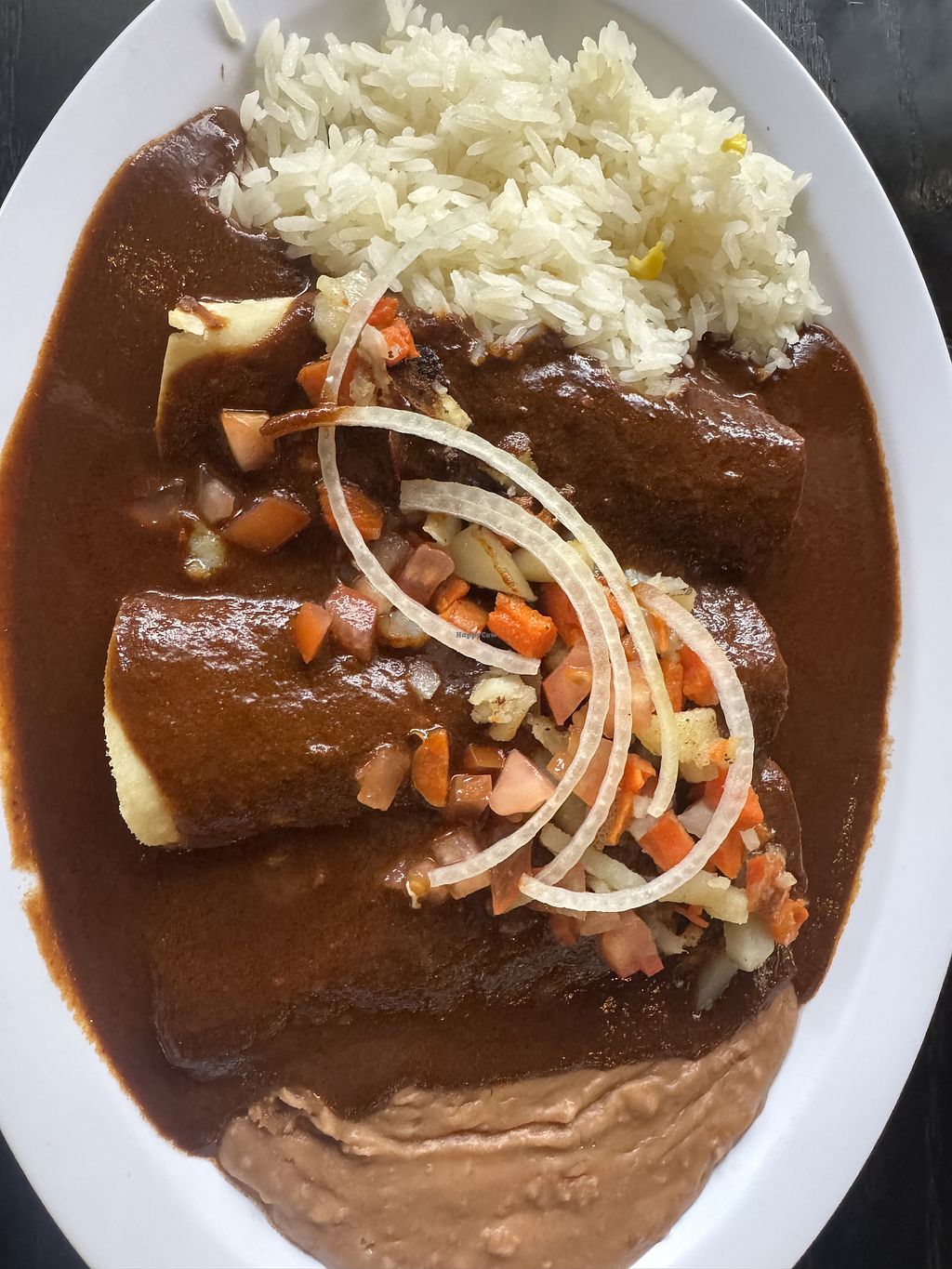 I'm in my home town for a quick visit. Found this on Happy Cow and glad I did. I got the enchilada mole.