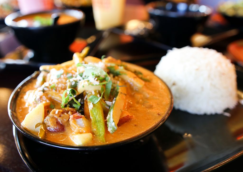 Serves meat, vegan options available. Indian restaurant with a variety of vegan appetizers and curry dishes. Vegan choices include tarka daal, chana masala, aloo gobi, Beyond keema curry, Beyond keema biryani, and vegan lassi with coconut milk. Specify vegan when ordering. Open Mon-Sun 11:00am-9:00pm.