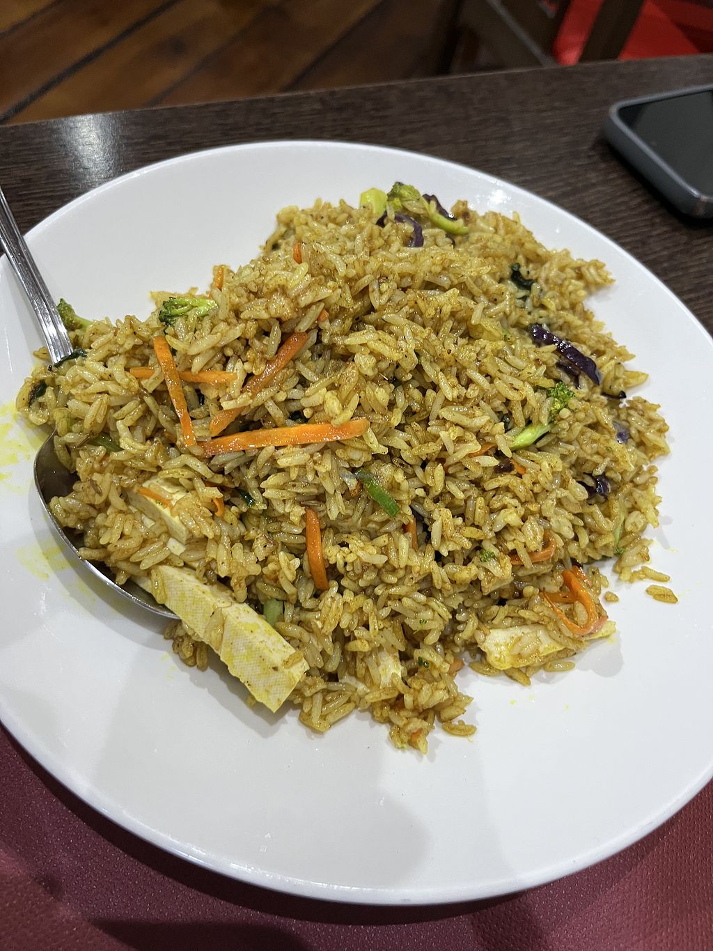 The staff were so friendly and helpful, and told us about several of the vegan options (not indicated on the menu) including fried rice dishes, mapo tofu, curry tofu, and mixed vegetables with tofu. We got one of the fried rice dishes, curry tofu, and mixed vegetables and tofu and they were all incredible.