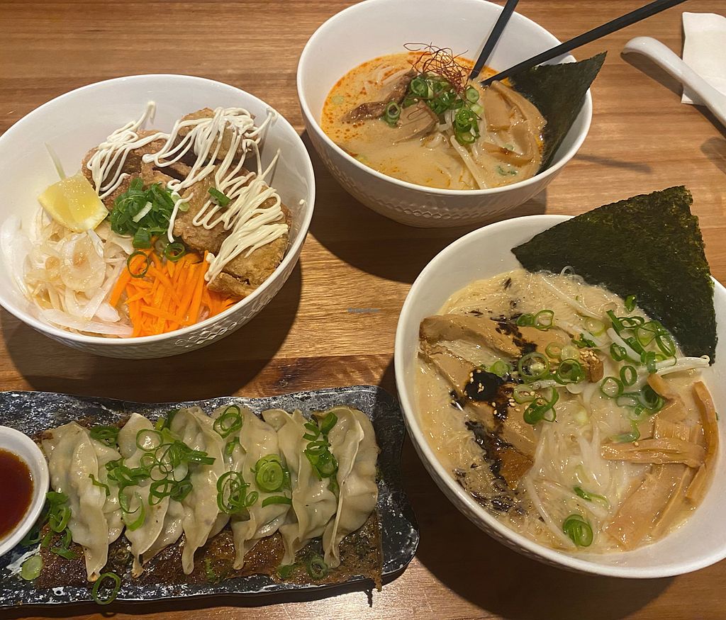Vegan curry, vegan red ramen and vegan gyoza