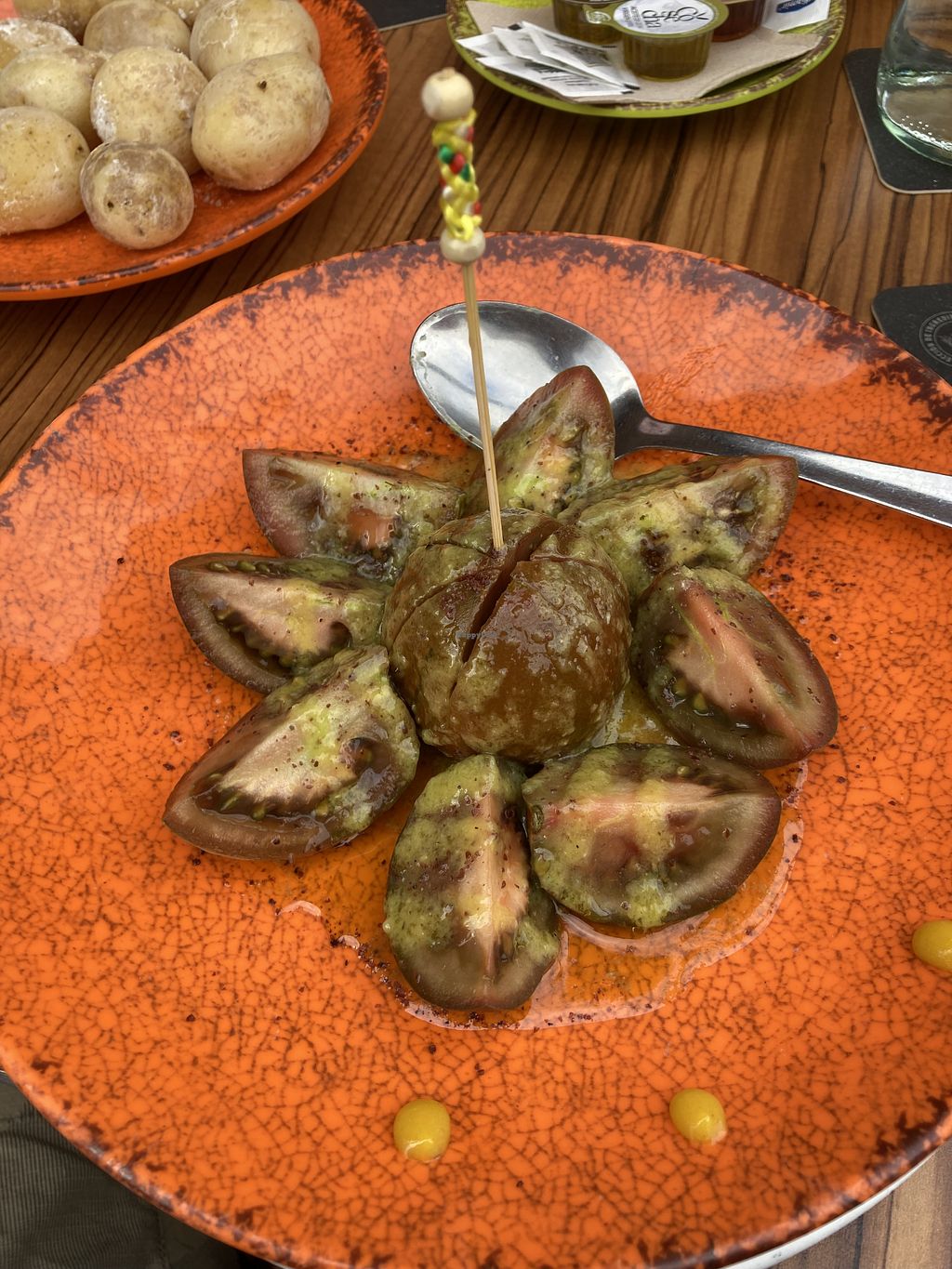 We had watercress soup, Canarian potatoes (papas arrugadas) and a tomato salad: it was all good and waiter was knowledgeable about vegan dishes on menu. Other days they have more options but the chef was away the day we came.